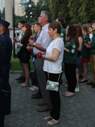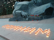 После объявленной минуты молчания, состоялась церемония возложения цветов к братской могиле и зажжение свечей.
