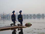 Далее все присутствующие направились в парк «Алые паруса», где представители Воронежской православной духовной семинарии провели панихиду в память о погибших на полях сражений, а курсанты Воронежского института ФСИН России спустили на воду «Венок Памяти». Из свеч участники акции выложили слово «Память».