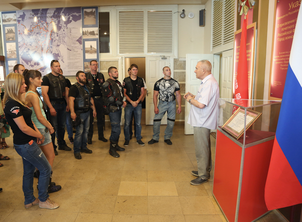 Сначала байкеры посетили мемориальный комплекс «Музей-диорама». Здесь их приветствовали заместитель главы администрации Воронежа Сергей Глазьев, руководители структурных подразделений мэрии, общественники.