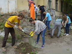 Общими силами была приведена в порядок территория возле дома № 50 на улице Сакко и Ванцетти, одной из старейших улиц нашего города. По официальным данным, на этой улице расположено 14 объектов культурно-исторического наследия.