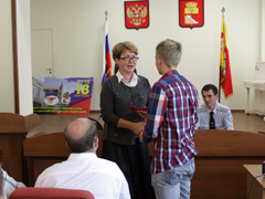 В торжественной церемонии вручения приняли участие руководитель управления по работе с административными органами и структурами гражданского общества администрации городского округа город Воронеж Елена Гудкова, заместитель руководителя управы Ленинского района по социальным вопросам Евгения Демченко, старший инспектор отдела охраны общественного порядка УМВД России по г. Воронежу капитан полиции Андрей Кострыкин, декан юридического факультета Российского государственного университета правосудия Александр Дядьченко.