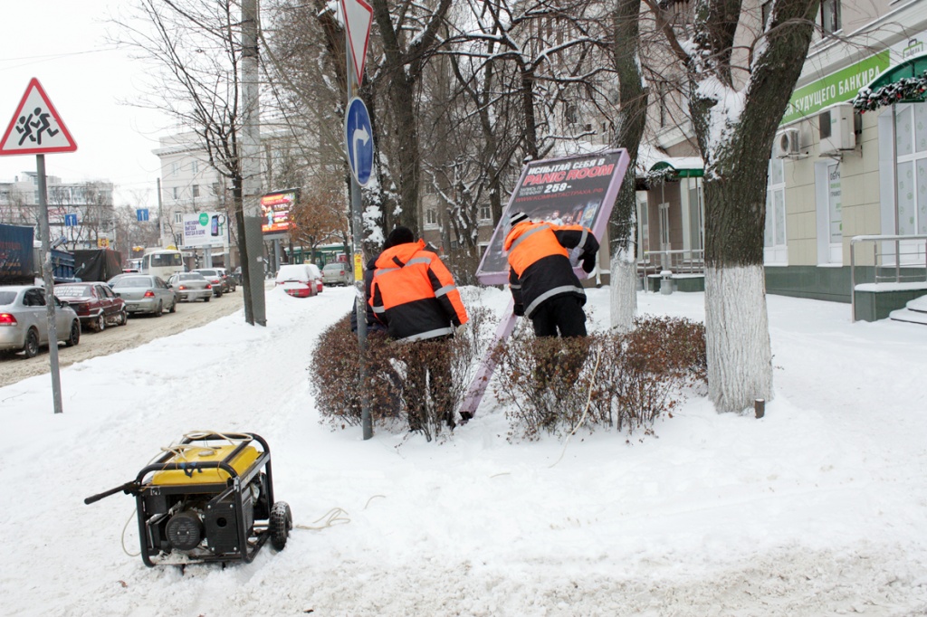 6 декабря на территории Ленинского района сотрудники управы, районного комбината благоустройства совместно с сотрудниками УМВД России по г. Воронежу провели очередной рейд по ликвидации незаконной рекламы.