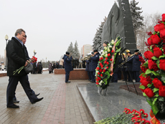 В этот же день состоялась торжественная церемония возложения венков и цветов к мемориалу «Памятник Славы». В церемонии возложения приняли участие руководители города, области, представители военных и силовых структур, а также ветеранских и общественных организаций.