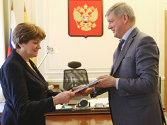 Александр Гусев рассказал Людмиле Андреевне, что в настоящее время городской комиссией по культурному наследию принято решение об установке в Воронеже бюста Героя Советского Союза А.М. Серебрякова.
