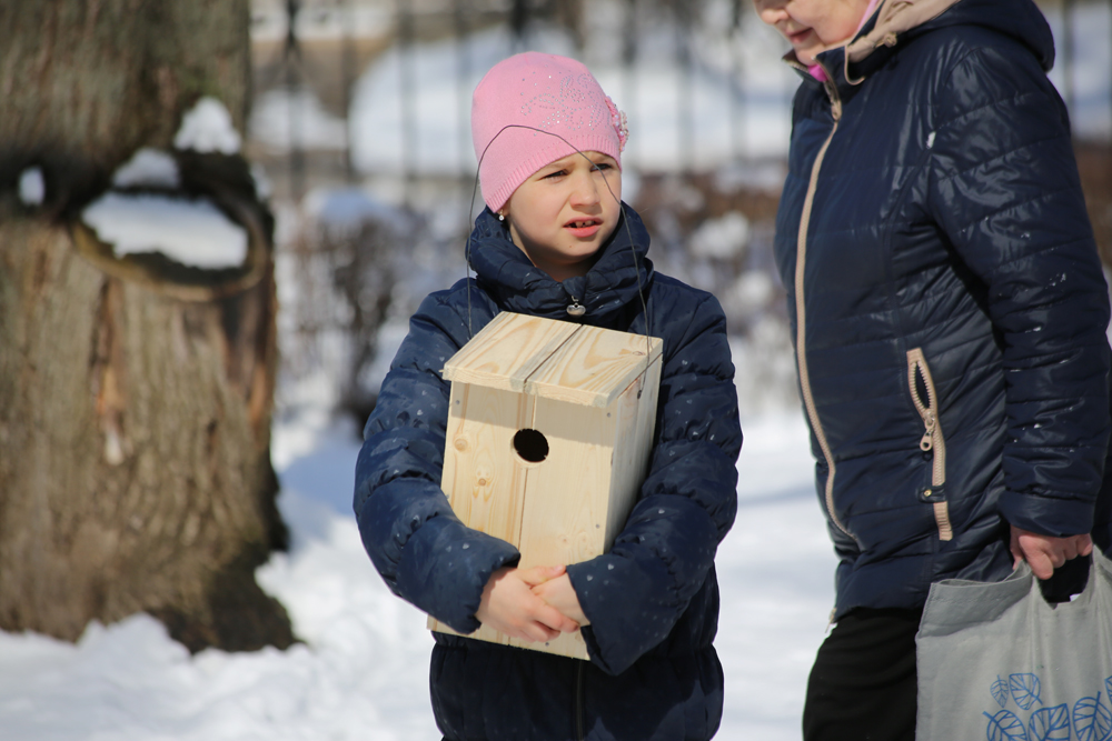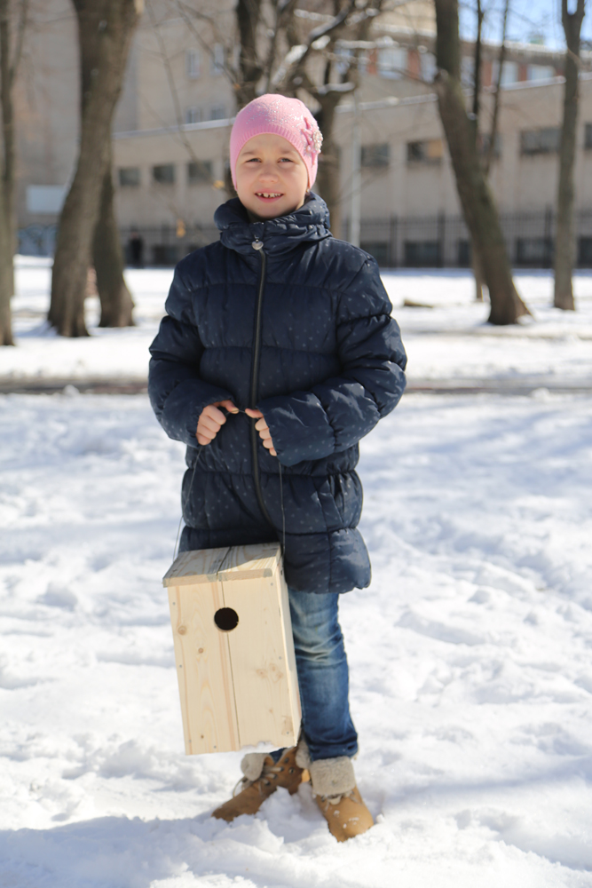 Третьеклассница Лиза Эктова принесла в парк скворечник, сделанный собственными руками. Даже название есть у этого уютного домика для птиц – «О чем мечтает сова». Самой Лизе очень бы хотелось, чтобы в ее скворечнике обязательно поселились птички и у них появились птенцы.