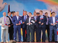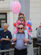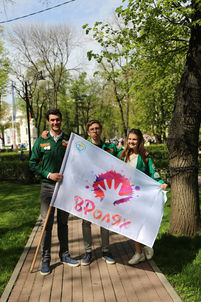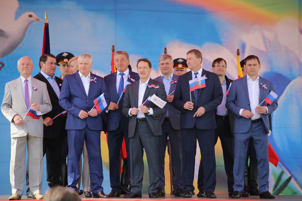 Под звуки губернаторского оркестра и громогласное «Ура!» демонстранты с флагами, транспарантами, цветами и воздушными шарами прошли от здания ЮВЖД до Никитинской площади.