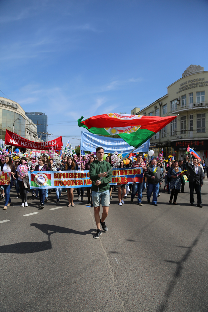 В День международной солидарности трудящихся несколько десятков тысяч воронежцев – представители трудовых коллективов учреждений образования, здравоохранения, спорта, культуры, промышленности, бизнеса, органов власти и другие – вышли на организованный областным Советом профсоюзов митинг.