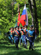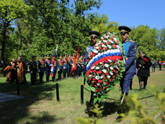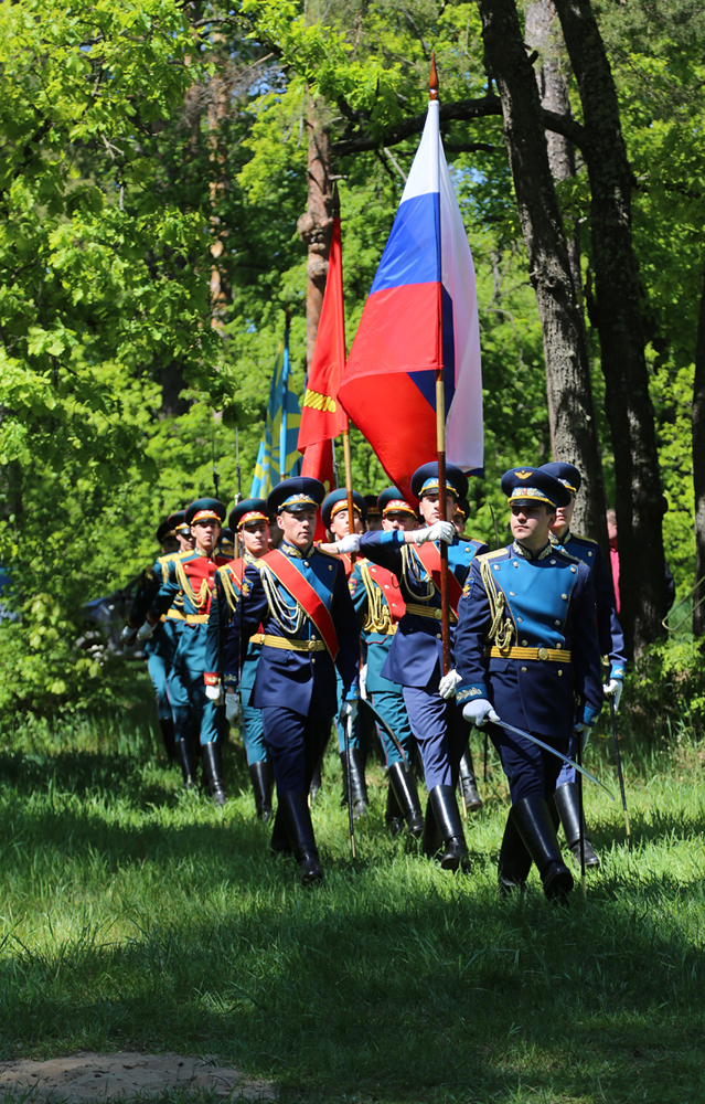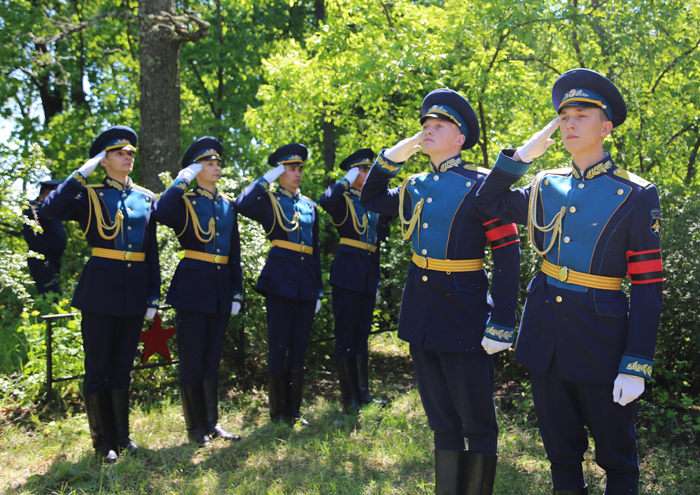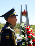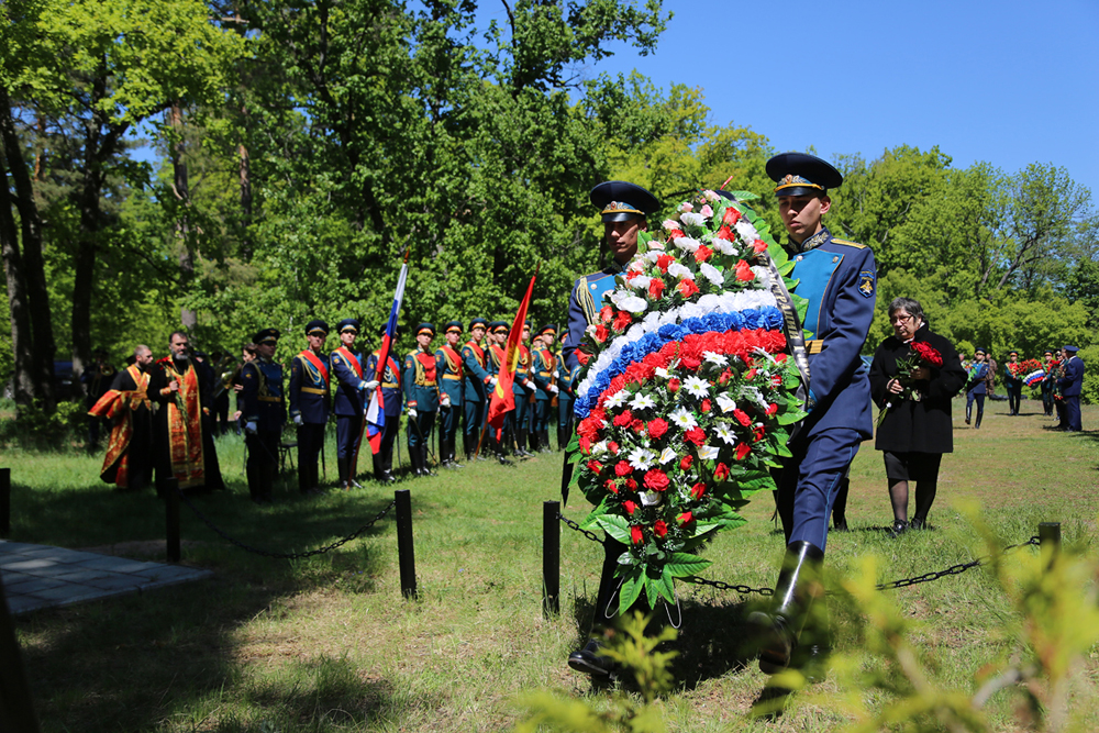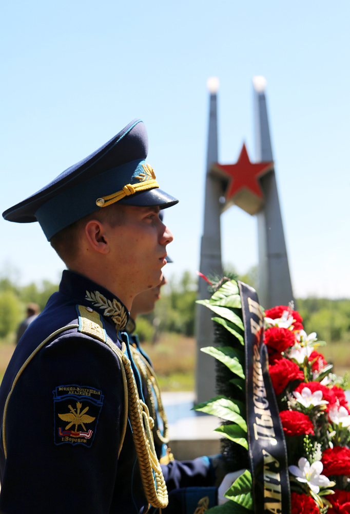 В память о погибших героях участники мероприятия возложили венки и цветы. Под залпы оружейного салюта военный оркестр исполнил гимн Российской Федерации, а почетный караул курсантов прошел торжественным маршем.