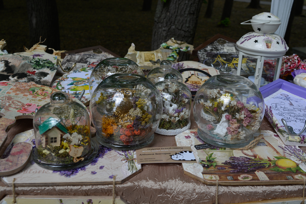 В парке также организовали галерею детских картин и прикладного творчества. Различные вышивки, в том числе и бисером, восхищали уникальностью и красотой. Многие вторы работ – дети с ограниченными возможностями.