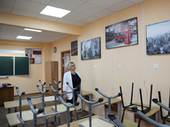 – Здесь располагались две столярные мастерские и несколько кабинетов. Благодаря программе «Содействие созданию в субъектах Российской Федерации новых мест в общеобразовательных организациях на 2016-2025 годы» из федерального бюджета на капитальный ремонт здания и приобретение оборудования были выделены около 12 млн. рублей. Нам удалось отремонтировать 8 помещений, в результате чего открылись еще 4 современных лингафонных кабинета, библиотека и конференц-зал. 250 обучающихся в результате поменяли вторую смену на первую, – рассказала директор учреждения Татьяна Новикова.