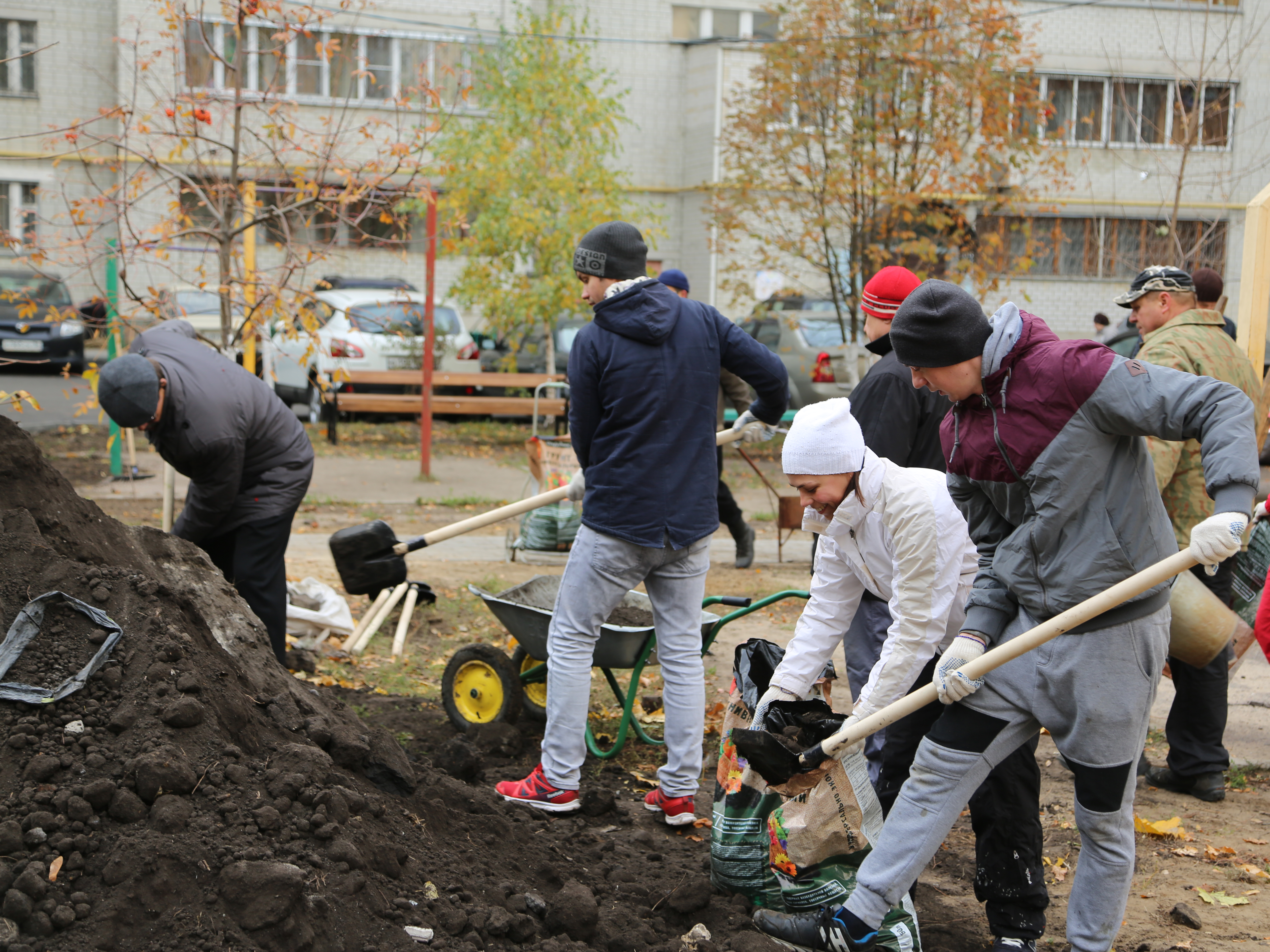 Стоит отметить, что в ряде случаев жители домов продолжают обустраивать свои территории даже после того, как подрядчики выполнили положенные по контракту объёмы работ. Например, жильцы дома по улице Краснознамённая 15, вооружившись садовым инструментом приводят в порядок клумбы, высаживают цветы и деревья.