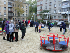 По случаю радостного события, во дворе дома № 51 по ул. Колесниченко и №№ 2, 2а по ул. 121 - Стрелковой дивизии состоялся праздник двора, организованный для жителей управой района.