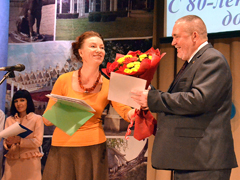 Начальник отдела по работе с молодежью и организации культурно – досуговой и физкультурно – спортивной деятельности управы Коминтерновского района Светлана Бойцова вручила благодарственные письма и подарки преподавателям, внесшим большой вклад в дело воспитания подрастающего поколения. В словах поздравления Светлана Александровна отметила, что районную управу и колледж связывают давние дружеские отношения. Студенты колледжа с удовольствием принимают самое активное участие во всех районных акциях и мероприятиях.