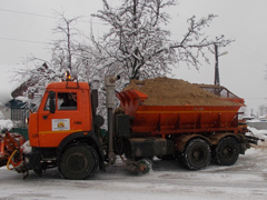 С момента начала снегопада на обработку проезжей части магистральных и второстепенных улиц Левобережного района израсходовано более 1070 тонн песко-соляной смеси.