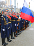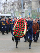 После оружейного залпа зазвучал гимн Российской Федерации, и по аллее мемориала торжественным маршем прошел Почетный караул курсантов военно-воздушной академии имени Жуковского и Гагарина.