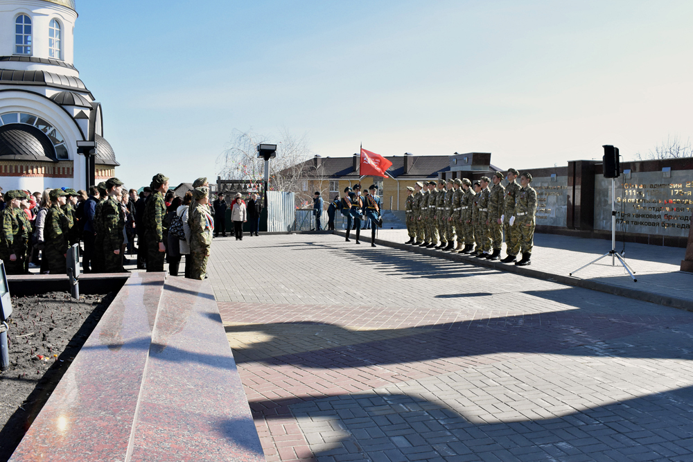 У братской могилы стяг из рук курсантов Воронежского института - филиала Ивановской пожарно-спасательной академии ГПС МЧС России приняли ученики 13-й школы. До 8 мая копия штурмового знамени 150-й Идрицкой стрелковой дивизии, взвившегося над Рейхстагом в 1945-м, будет путешествовать по всем школам Ленинского района. В каждом учебном заведении пройдут вахты памяти, а в преддверии Дня Победы флаг вернется к будущим спасателям.