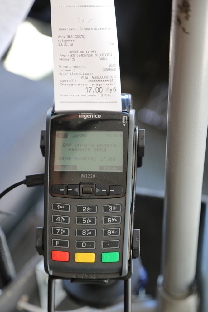 С 30 мая во всех пассажирских автобусах муниципального траснпортного предприятия «Воронежпассажиртранс» появилась дополнительная возможность оплатить проезд безналичным способом с помощью различных банковских карт и электронных средств оплаты (смартфоны, умные часы).