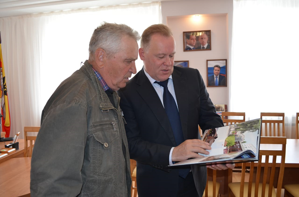 Руководитель управы Левобережного района Юрий Бавыкин встретился с создателем копии воронежского баркалона «Меркурий» инженером Виктором Неберкутиным