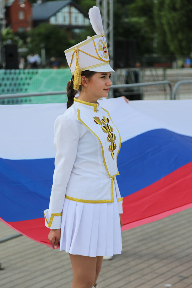 Праздник любителей футбола начался на Адмиралтейской площади в 16.00 с выступления мужского хора «Русский формат», исполнившего песню, написанную для ЧМ-2018.