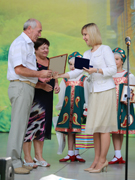 От имени временно исполняющего обязанности губернатора Воронежской области Александра Гусева и руководителя управы Ленинского района «виновников» торжества поздравила его заместитель Марина Андрейчук и вручила семье Гошук Почетный диплом победителей Всероссийского конкурса «Семья года России» и памятную книгу с изложением истории знаменитой семьи из Ленинского района, а также Почетный знак от Воронежского областного фонда социальной поддержки населения.