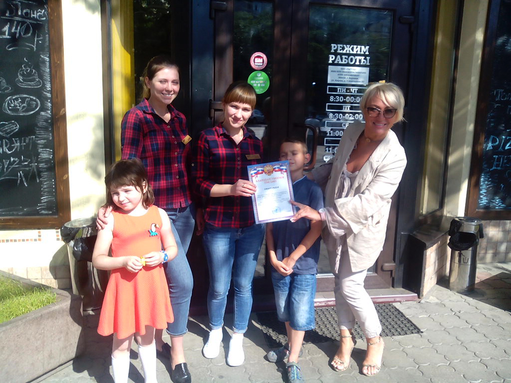 Их пригласили в гости сотрудники сети творческих пиццерий Craft Pizza. Малыши и их родители великолепно провели время, а начальник отдела опеки и попечительства управы Коминтерновского района Ольга Лесникова вручила благодарственное письмо управы сети творческих пиццерий за чуткое и внимательное отношение к детям из многодетных семей.
