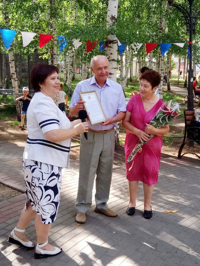 К поздравлениям семей-юбиляров присоединилась исполняющая обязанности заместителя главы администрации по социальной политике Любовь Кулакова, которая поприветствовала собравшихся и вручила юбилейные медали «За любовь и верность».