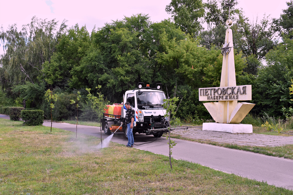 Кольцовская, Революции 1905 года, Плехановская, Донбасская, Платонова, Острогожская, Краснознаменная, Ф. Энгельса, Челюскинцев и других. Удаление поросли по улицам Острогожская, Херсонская. Завоз чернозема для обустройства газонов во дворах МКД по ул. Чапаева. Покос травы осуществляется по улицам Кропоткина, 20 - летия Октября, Моисеева, 9 Января, Свободы; стрижка кустарника по улицам Ф. Энгельса, Станкевича. Полив проезжей части дорог осуществляют комбинированные дорожные машины.