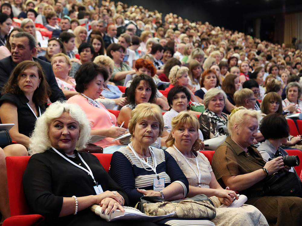 Более двух тысяч человек – педагоги и руководители общеобразовательных учреждений, школ искусств, спортивных школ, заведующие и воспитатели детских садов, ветераны педагогического труда, представители исполнительной и законодательной власти области и города, профсоюзов, общественных организаций и социально ответственного бизнеса – собрались в «Event hall» Сити-парка «Град» на традиционную августовскую встречу – городской образовательный форум.