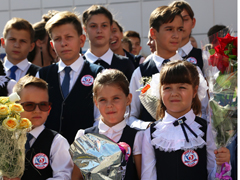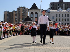 После этого зазвенел долгожданный первый звонок, и ребята отправились знакомиться со школой. Александр Гусев и Вадим Кстенин тоже побывали в новом учреждении. Они посетили спортивный и актовый залы, учебные классы, а также осмотрели территорию образовательного заведения.