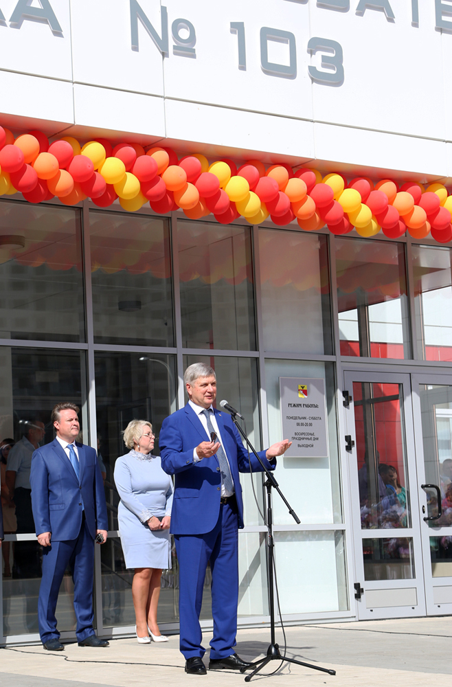 С самого утра на школьном дворе было шумно – нарядные девчонки и мальчишки с цветами, их родители, бабушки и дедушки, учителя – собрались, чтобы принять участие в торжественном открытии долгожданной школы. Поздравить их с Днем знаний и новосельем приехали временно исполняющий обязанности губернатора Воронежской области Александр Гусев и глава города Вадим Кстенин, а также генеральный директор АО ДСК Сергей Крючков.