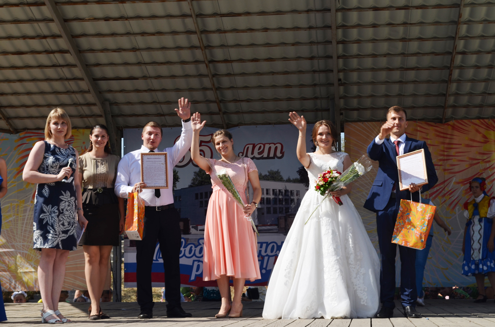 Представители отдела ЗАГС Левобережного района на сцене поздравили молодоженов, которые в этот день зарегистрировали свой брак.