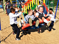 Тем временем малыши с удовольствием резвились на долгожданных качелях и каруселях