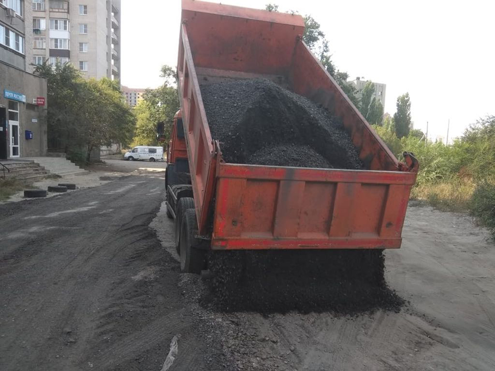 Продолжается и ремонт дорог методом отсыпки среза асфальтобетона. Такие работы велись по улице Зеленая (мкр Репное) и на проезде воль домов 48,50,54 и 56 по Б. Хмельницкого.