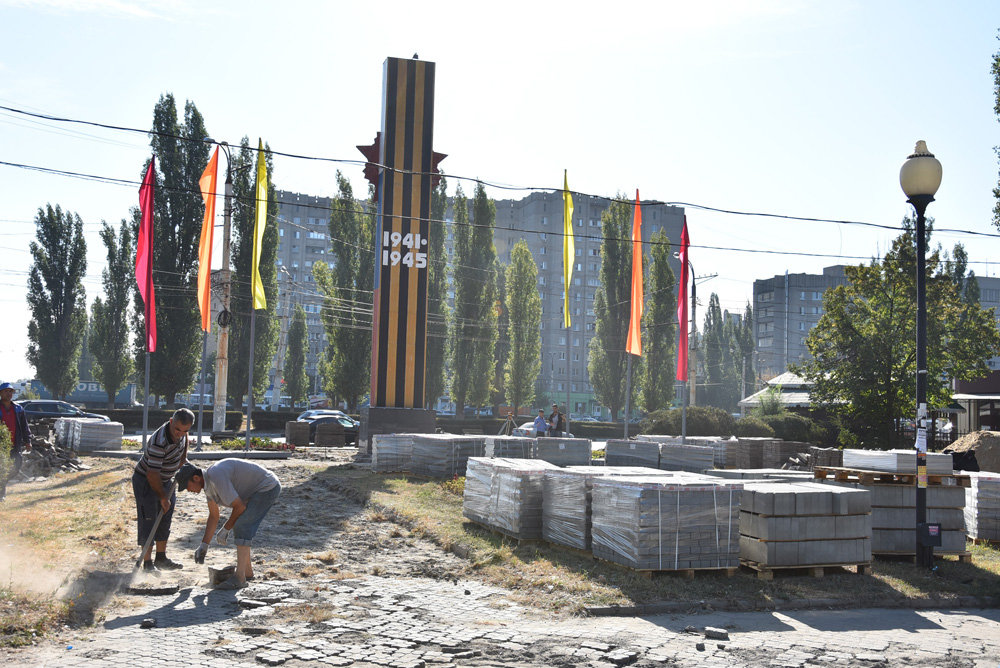 Напомним, что аналогичные виды работ ведутся на текущий момент и в сквере «Аллеи Славы». Там также полным ходом идет разбор старого плиточного покрытия.