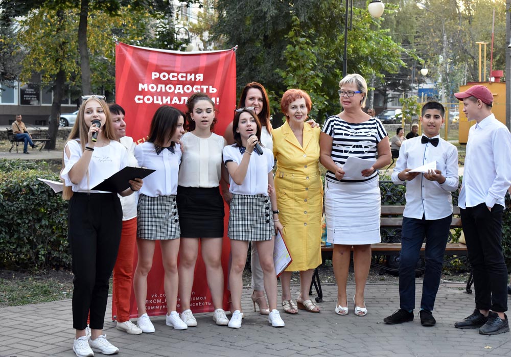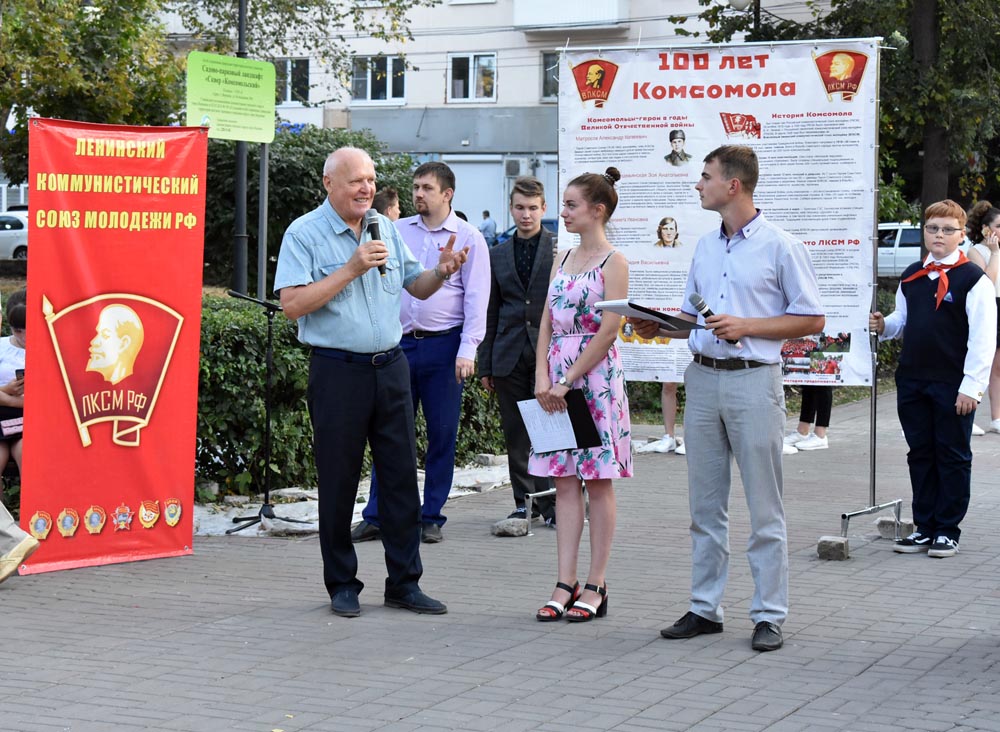 В среду, 12 сентября, в Комсомольском сквере прошла творческая встреча молодежи района с ветеранами Всесоюзного Ленинского Коммунистического Союза Молодежи, посвященная приближающемуся столетию со дня образования молодежной организации.