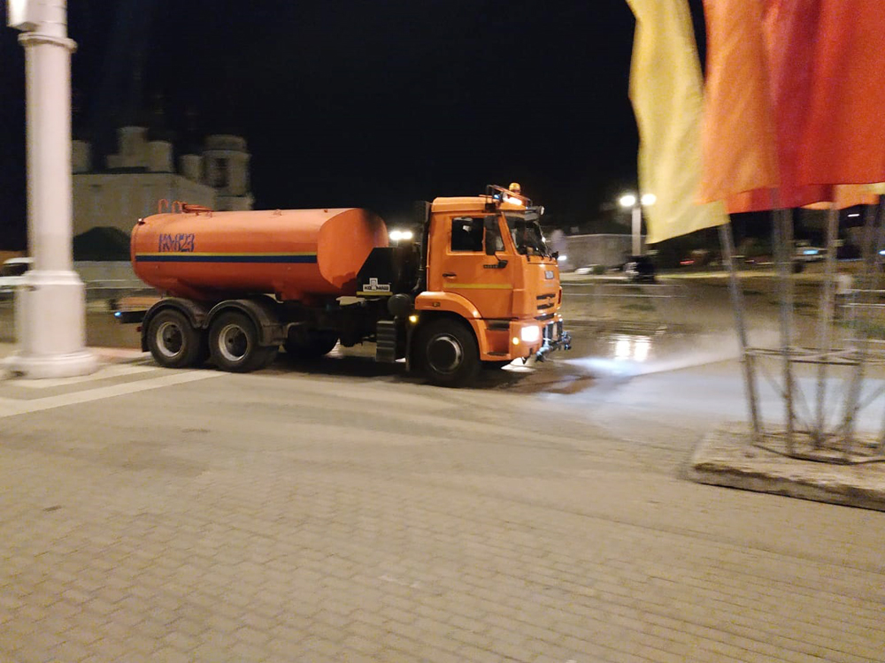 В день проведения праздничных мероприятий город убирали 142 спецмашины (подметально-уборочных, самосвалов, фронтальных погрузчиков и других) и 206 дворников и грузчиков.