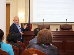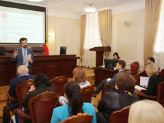С докладом выступили руководитель управления стратегического планирования и программ развития администрации городского округа город Воронеж Андрей Жаглин и профессор Воронежского госуниверситета Юрий Трещевский.