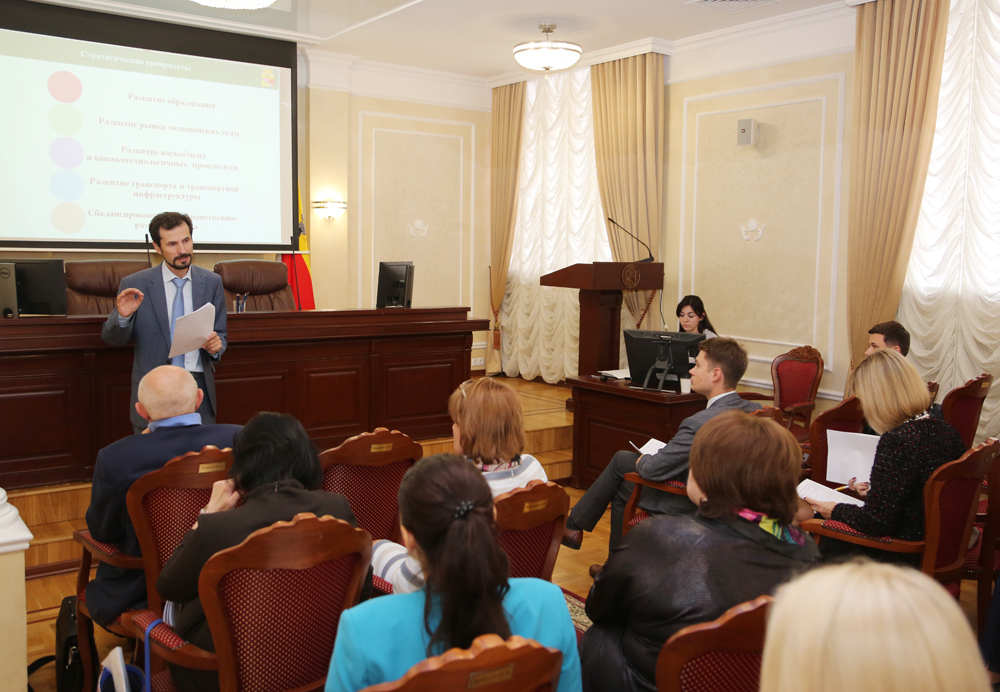 С докладом выступили руководитель управления стратегического планирования и программ развития администрации городского округа город Воронеж Андрей Жаглин и профессор Воронежского госуниверситета Юрий Трещевский.
