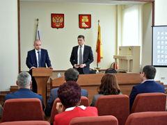 Десять самых спортивных муниципальных служащих Ленинского района, во главе с Сергеем Корчевниковым, получили золотые знаки из рук руководителя городского управления физической культуры и спорта Александра Бахтина.