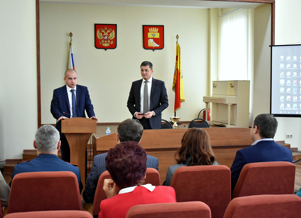 Кубок за первое место управе Ленинского района вручил глава города Вадим Кстенин на городской планерке.