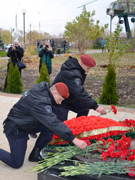 После объявленной в память погибших минуты молчания, под залпы оружейного салюта военный оркестр управления Росгвардии по Воронежской области исполнил гимн Российской Федерации. Настоятелем храма «Во имя новомученников исповедников воронежских» иереем Ильей Востриковым был проведен молебен освящения мемориала. Завершилась церемония возложением венков и цветов к мемориалу.