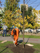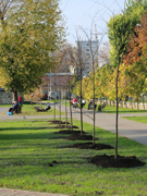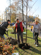 После осмотра территории сквера начались работы по высадке зеленых насаждений. Здесь сегодня появились 40 крупномерных саженцев липы и клена, а также 600 кустарников. А всего в осенний период силами подрядных организаций по заказу управления экологии в городских парках, скверах и вдоль магистральных улиц будет высажено более 1400 деревьев (в том числе, более 500 крупномерных саженцев с закрытой корневой системой (комом земли) и 7000 кустарников.
