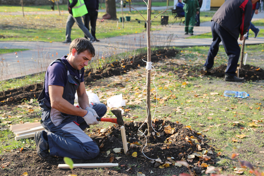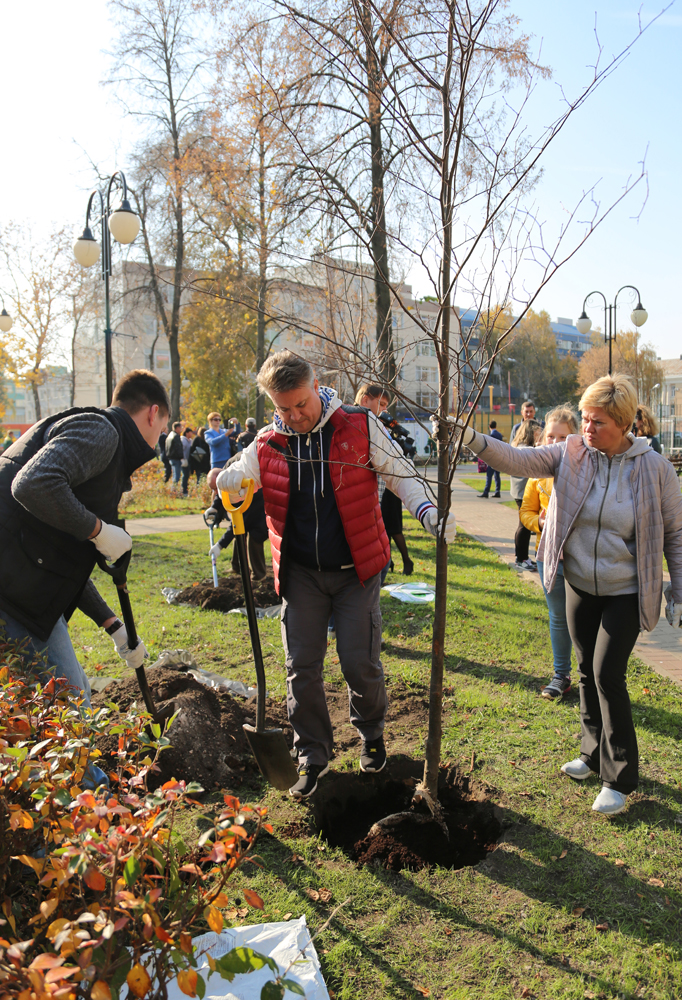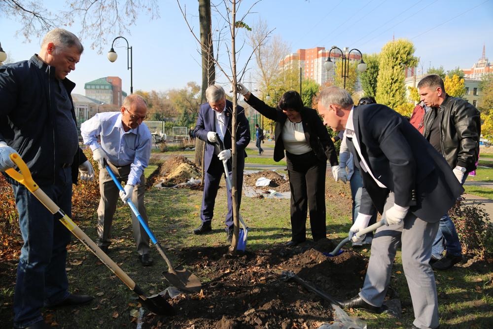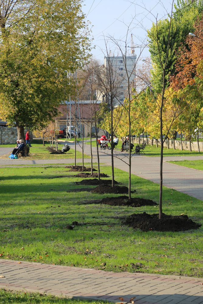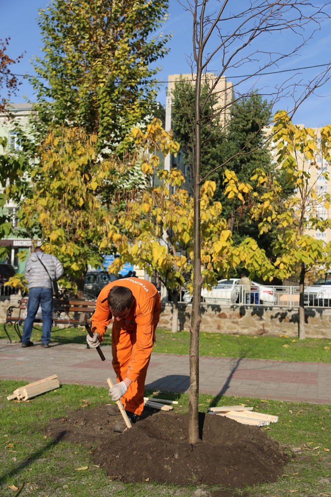 После осмотра территории сквера начались работы по высадке зеленых насаждений. Здесь сегодня появились 40 крупномерных саженцев липы и клена, а также 600 кустарников. А всего в осенний период силами подрядных организаций по заказу управления экологии в городских парках, скверах и вдоль магистральных улиц будет высажено более 1400 деревьев (в том числе, более 500 крупномерных саженцев с закрытой корневой системой (комом земли) и 7000 кустарников.
