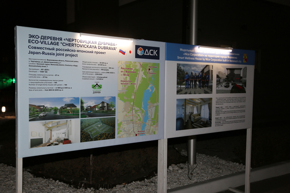 Первым этапом взаимодействия сторон стало строительство «умного здорового» дома с применением передовых японских технологий. Целью данного проекта является разработка стандартов «smart wellness» жилья с дальнейшим внедрением на территории Российской Федерации. Результатом реализации проекта стало возведение на территории ВГТУ «умного здорового дома», что позволяет с практической точки зрения исследовать и оценить качество, специфику и особенности использования применяемых в строительстве эко- и энергоэффективных технологий.