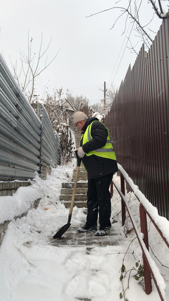 В этой связи мужчины-сотрудники управы Ленинского района и районного комбината благоустройства в зимний период обеспечивают нормальный проход пешеходов по 25 нагорным лестницам, очищая их от снега.