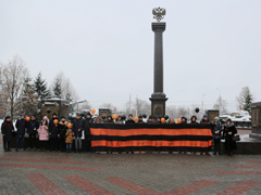 В ней приняли участие ученики образовательных учреждений Левобережного района. Школьники, выстроились перед стелой «Воронеж – город воинской славы» и одновременно запустили в небо шары черного и оранжевого цветов.