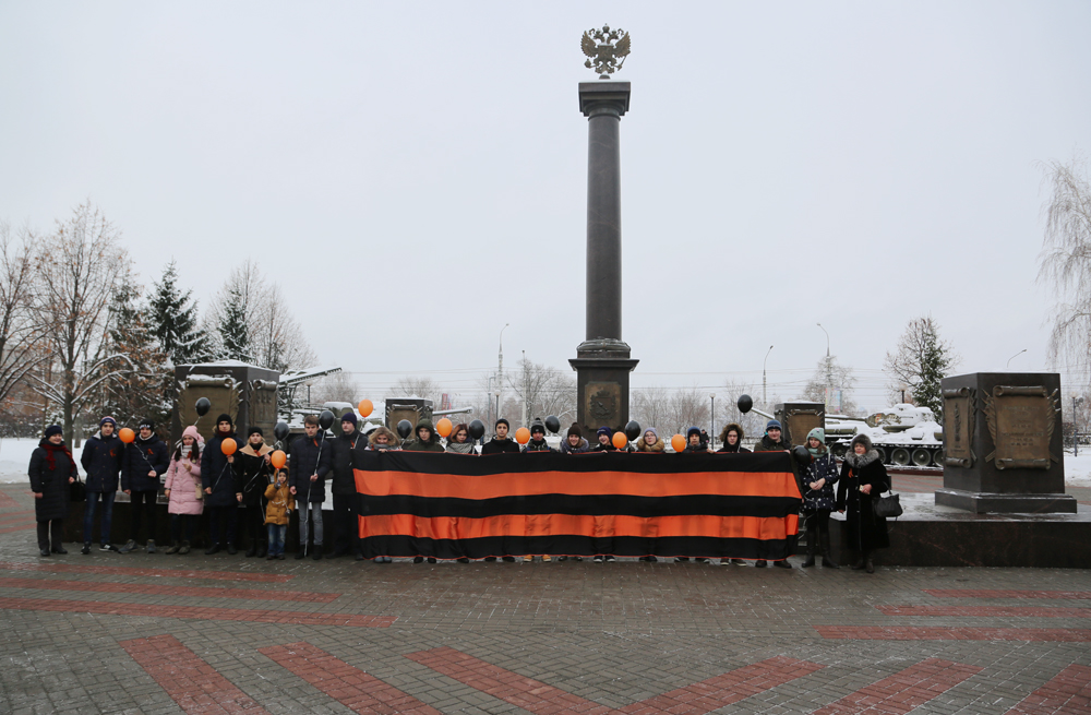 В ней приняли участие ученики образовательных учреждений Левобережного района. Школьники, выстроились перед стелой «Воронеж – город воинской славы» и одновременно запустили в небо шары черного и оранжевого цветов.