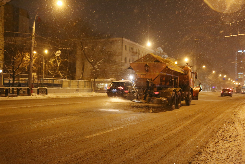 В ночь на понедельник на улицах города работало 160 единиц уборочной техники