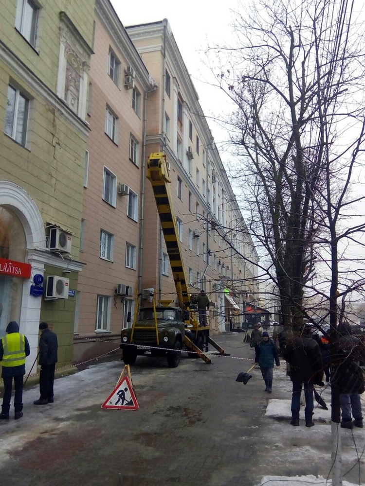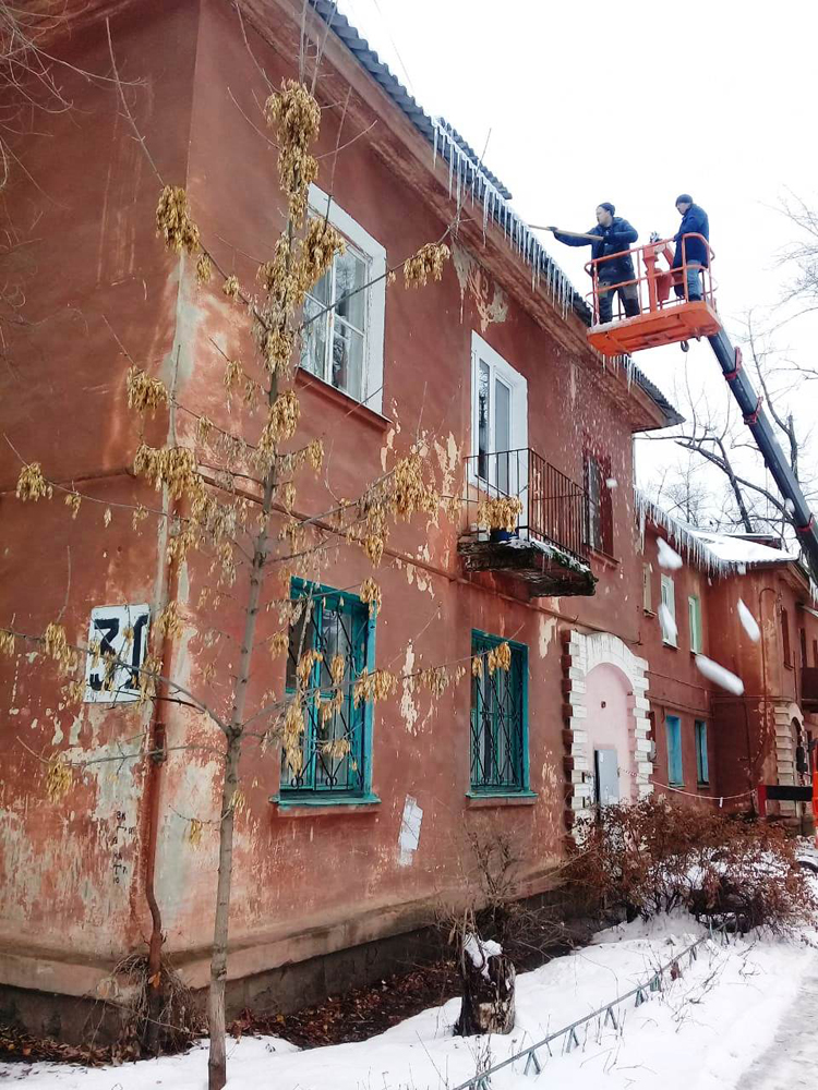 Воронежские коммунальщики продолжают борьбу со снегом и наледью на скатных кровлях домов