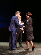 В заключение своего выступления Вадим Кстенин вручил почетные грамоты администрации городского округа город Воронеж ветеранам и сотрудникам УФСБ по Воронежской области.